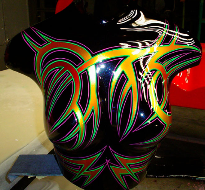 Custom paint for cars, trucks and motorcycles. Featuring restoration, repair, graphics, gold leaf, pinstripe, airbrush, true fire, flames and more.